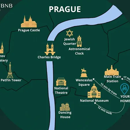 Ez az apartman 2 km-re fekszik a Vysehradi kastély és 350 méterre a Jan Masaryk térségétől. Ez az apartman közel helyezkedik el a Zluta Pumpa területéhez, 3 kilométerre a város központjától. A szálláshely egy 7 perces sétára van a Bad Jeff's Barbeque bár területétől.